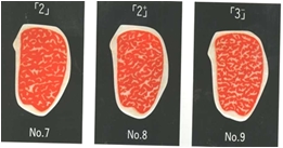 先ずは、霜降りと言われるにふさわしい脂肪交雑(サシ)が入っていなければ、お話にならないのですが、、、。