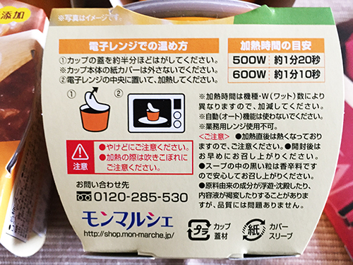 と思いつつ、とある展示会で見つけたのがモンマルシェさんの「野菜をMotto」電子レンジで温めるレンジカップスープです。